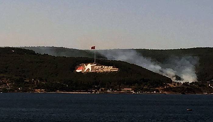 Çanakkale’de Kilitbahir Köyü’ndeki Ağadere Ağır Mecruhin Hastanesi Şehitliği ile dağdaki ‘Dur Yolcu’ yazısının arasında kalan ormanlık alanda yangın çıktı.
