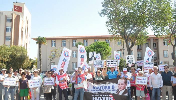 Mantaş,“Eğitimin acil çözüm bekleyen sorunlarına kalıcı çözümler üretmek yerine, MEB yangından mal kaçırırcasına hazırladığı ve bu öğretim yılında uygulamaya koyacağı yeni müfredatla, çağdaş, bilimsel ve laik eğitimin son parçalarını da yok etmeye çalışmıştır. İki yıldır süren çalışmalarla meydana getirildiği söylenen müfredat için bu alandaki eğitim-bilim uzmanlarının, üniversitelerin ve demokratik kitle örgütlerinin tümünün değil, yandaş sendikaların ve Bakan Yılmaz’ın ifadesiyle 100 bine yakın öğretmen ve velinin görüşü alınmıştır. Bu 100 bin öğretmen ve velinin kim olduğu sorusu da, en az müfredatın kendisi kadar karanlıktır. AKP’nin siyasi söylemlerinin direkt ya da dolaylı şekilde yer bulduğu, her vesileyle 15 Temmuz’un hatırlatıldığı, din ağırlıklı içeriklerin artırıldığı müfredatta; pozitif bilimlerin öğretimi geriletilmiş ve Atatürkçülük kavramı gölgeye itilmeye çalışılmıştır. İktidarı boyunca müfredatı yapboza çeviren AKP, bu en köklü değişikliğinde de bilimsel değil siyasi hamlelerle bir değişikliğe gitmiş ve çocuklarımızın –dolayısıyla ülkemizin- geleceği ile oynamıştır. Bakan’ın müfredat değişikliğine gerekçe olarak sunduğu “sadeleştirme” tezi de artık bayatlamıştır. Bugüne kadar her müfredat değişikliğini “sadeleştirme” olarak sunan AKP’nin, şimdiye kadar ki hiçbir değişikliğinde bunu yapamadığı da, aslında bunu hedeflemediği de açıktır. Çağdaş, bilimsel, laik ve ulusal eğitimin savunucusu Eğitim-İş olarak bu tepeden inmeci, gerici müfredatı yargıya taşıdığımızı, Cumhuriyet’in değerlerini, Atatürk ilke ve Devrimlerini, bilimin ana konularını çocuklarımıza öğretmeye devam edeceğimizi belirtiyoruz. Her geçen gün içten içe çürüyerek bir enkaz haline getirilmiş eğitim sistemimizin yıllar içinde birikerek artan yapısal sorunları, geçici, günübirlik politikalarla geçiştirilmiş ya da çözümsüz bırakılmıştır. Bir yandan temel bir insan hakkı ve bir kamu hizmeti olan eğitim piyasaya açılırken, öte yandan da ulusal belleği silinmiş, sorgulamayan, itaatkâr, kendi adına karar verenlerin kararlarına biat eden bir nesil yetiştirilmeye çalışılmaktadır. Çocuklarımızın öğrenmeye değil, sınavlara koşullandırıldığı, öğretmenlerin düşük ücretle, esnek ve güvencesiz çalışmaya zorlandığı, siyasal kadrolaşmanın sınır tanımadığı, okullardan bilim ve sanatın kapı dışarı edildiği, dini referans alan uygulamaların arttığı bir eğitim sistemiyle sağlıklı bireylerin yetiştirilmesi mümkün değildir. Eğitim-İş olarak, çocuk ve gençlerimizin, geleceğimizin siyasi iktidarın yarattığı enkazın altında yok olmaması için acil adımlar atılması zorunluluğunu bir kez daha belirtiyor, parasız, bilimsel, demokratik ve laik eğitimin tüm yurttaşlar için ayrım gözetmeksizin hayata geçirilmesini istiyoruz. Bu yüzden Atatürk ’süz, bilimden, çağdaşlıktan ve Laiklikten uzak Gerici Müfredatı kabul etmiyoruz ”dedi.