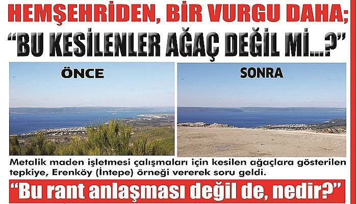 Kadın hemşehri, maden sahasında kesilen ağaçlara gösterilen tepkinin, Erenköy sırtlarında gerçekleşen kesime gösterilmediğine dikkat çekti. Şok iddiada bulundu;