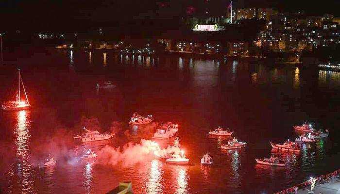 Koronavirüs nedeni ile sadece resmi törenlerin yapıldığı, diğer etkinliklerin salgın nedeni ile iptal edilmesi dolayısı ile buruk geçen Cumhuriyet Bayramında Balıkçıların yat limanı ve kordon boyunda yaktığı meşaleler geceyi aydınlattı.