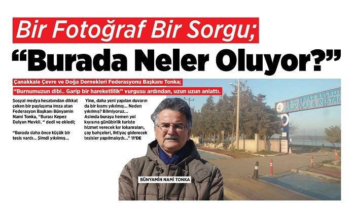Çanakkale Çevre ve Doğa Dernekleri Federasyonu Başkanı Tonka; “Burnumuzun dibi.. Garip bir hareketlilik” vurgusu ardından, uzun uzun anlattı.