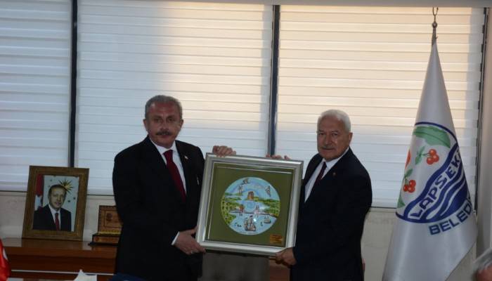 18 Mart Şehitleri Anma Günü ve Çanakkale Deniz Zaferi'nin 106. yıl dönümü dolayısıyla Şehitler Abidesi'ndeki törene katılan ardından da 1915 Çanakkale Köprüsü şantiye alanında incelemelerde bulunan Türkiye Büyük Millet Meclisi Başkanı Prof. Dr. Mustafa Şentop ile Kültür ve Turizm Bakanı Mehmet Nuri Ersoy, Köprüdeki programlarının ardından yapılan yatırımlarla çehresi değişen Çanakkale Köprüsü ile beraber yıldızı parlayan Lapseki Belediyesini ziyaret ettiler. Lapseki Belediyesi ziyaretinde Belediye Başkanı Eyüp Yılmaz iki Bakanı törenle karşıladı. Yeni tamamlanan Belediye binasını gezen iki bakan çalışanlara başarılar dilerken, Makamda gerçekleştirilen sohbet öncesinde ise Belediye Başkanı Eyüp Yılmaz, iki bakana da çeşitli hediyeler sundu. Basına kapalı devam eden ziyarette TBMM Başkanı Şentop ve Bakan Ersoy'a AK Parti Grup Başkanvekilleri Bülent Turan ve Muhammet Emin Akbaşoğlu ile AK Parti'li milletvekilleri de eşlik etti. Ziyarette Belediye Başkanı Eyüp Yılmaz İki Bakan’a İlçede yapılan projeler hakkında bilgi vererek destek de istedi.