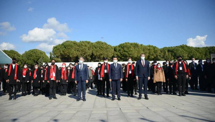 Aile Çalışma ve Sosyal Hizmetler Bakanlığımız tarafından 18 Mart Çanakkale Zaferi’nin 106. Yıldönümü ve Şehitleri Anma Günü dolayısıyla gençlere var olan milli tarih şuurunun daha da geliştirilmesi, vatan ve bayrak sevgisinin pekiştirilerek gelecek kuşaklara aktarılması amacıyla hayata geçirilen “Anadolu Gönül Yolu 81 Genç 81 Bayrak” etkinliği kapsamında ay yıldızlı şanlı Bayrağımız 7 bölgeden yola çıkartılmıştı. 7 bçlgeden taşınarak şehir şehir getirilen bayraklar Şehitler abidesinde düzenlenen törenle göndere çekildi. Şehitler Abidesinde gerçekleştirilen törene Kültür ve Turizm Bakan Yardımcısı Ahmet Misbah, Tarihi Alan Başkanı İsmail Kaşdemir, Eceabat Kaymakamı Mustafa Çiftçiler ve çok sayıda öğrenci katıldı. Ülkenin 7 bölgesinden yola çıkarak Çanakkale’ye getirilen Türk Bayrakları, Şehitler Abidesinde düzenlenen törenle Kültür ve Turizm Bakan Yardımcısı Ahmet Misbah, Tarihi Alan Başkanı İsmail Kaşdemir ve Eceabat Kaymakamı Mustafa Çiftçiler’e teslim edildi. Teslim alınan Şanlı Bayraklar Şehitler Abidesi'nde ve Tarihi Alanın çeşitli yerlerinde göndere çekildi.
