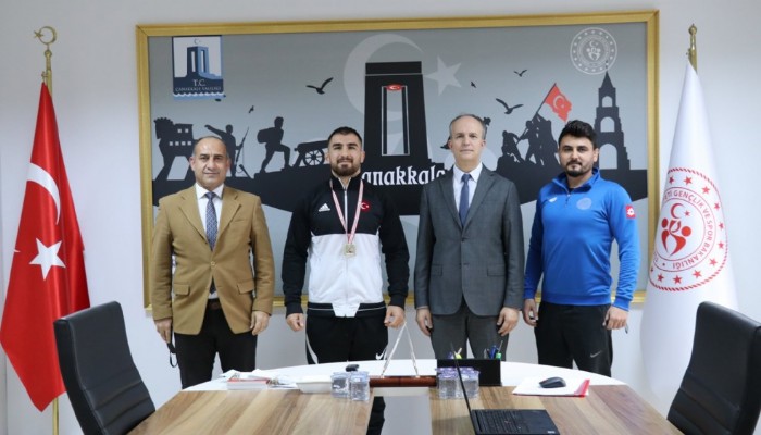 Çanakkale’ye dönen milli güreşçi Gençlik Spor İl Müdürlüğünü ziyaret ederek desteklerinden dolayı Gençlik Spor İl Müdürü Ömer Kalkan’a teşekkür etti.