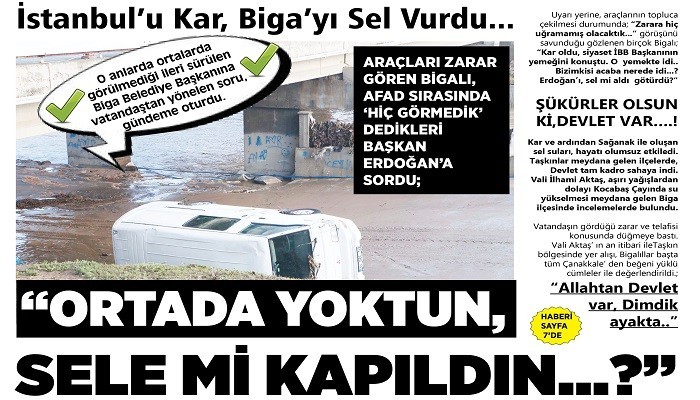Mega kent İstanbul' da, Kar afadı sırasında İngiliz büyükelçi ile yemekli buluşması eleştirilen İBB Başkanı öğneği ile, bu kez sesisini yükseltenler, sele kapılan araçları zarar gören Bigalılar oldu.