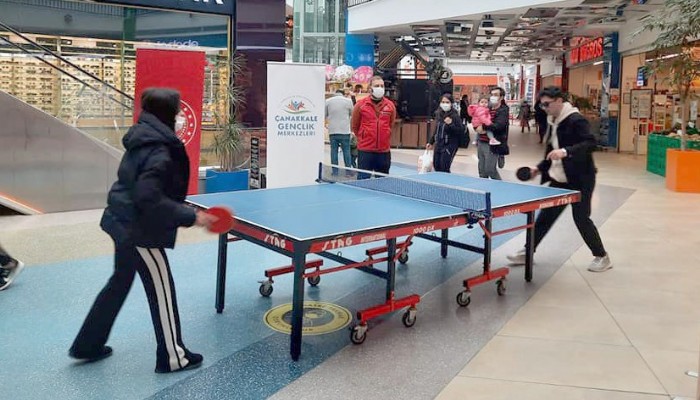 Gençlerin sorunlarına yardımcı olmak, rehberlik ve danışmanlık yapmak, İl düzeyinde yapılacak olan gençlik organizasyonlarında diğer gençlik kuruluşları ile koordinasyonu gerçekleştirmek amacı ile tüm illerde olduğu gibi Çanakkale’de de faaliyetlerine devam eden gençlik Merkezi, çeşitli aktivitelerle vatandaşlara hem spor branşları tanıtılıyor hem de uygulamalı olarak  tanıtımlar gerçekleştiriliyor. Özellikle gençlerin sanal ortamdan çıkarılması ve daha sağlıklı işlere yönlendirilmesi amacı ile Sosyal Medyadan Sosyal Meydana’ sloganı ile çeşitli etkinlikler gerçekleştiriliyor. Yapılan etkinlikler kapsamında bu hafta Masa tenisi tanıtımı gerçekleştirildi. AVM’de kurulan Tenis masasında birbirleri ile kapışan vatandaşlar, hem güzel dakikalar yaşadı hem de masa tenisi oynayarak sanal alemden uzaklaştılar.