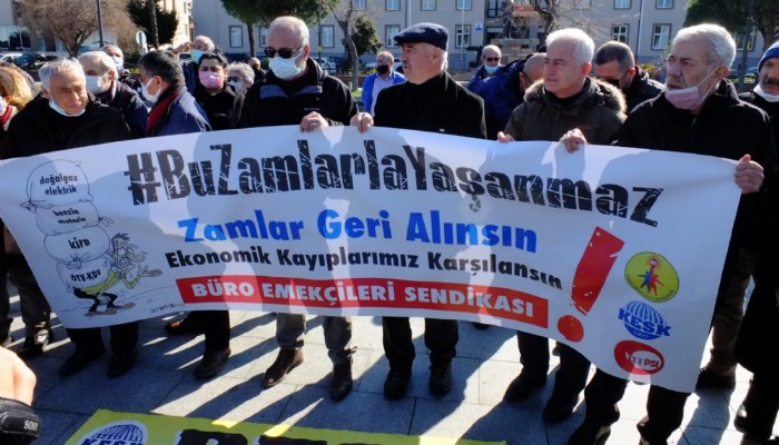 Cumhuriyet Halk Partisi İl Sekreteri Doğan Ateş, CHP Eski İl Başkanı İsmet Güneşhan, Büro Emekçileri Sendikası Başkanı Bahadır Derbicioğlu ve sendika üyelerinin katıldığı basın açıklaması sonrasında üyeler, yapılan zamlara tepki göstermek amacı ile doğalgaz ve elektrik faturalarını yaktılar.